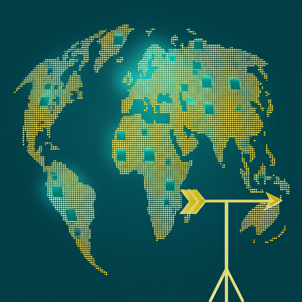 全球互聯電腦晶片網絡圖示,代表費城半導體指數SOX作為全球半導體產業脈動的數位風向標